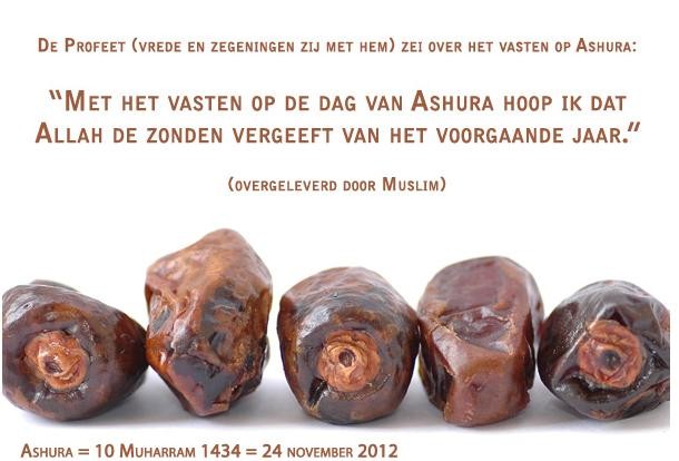 De prachtige dag van Arafa met haar gunsten is onlangs aan ons voorbij gegaan, maar de dag van Ashoera is nabij. De Islamitische maand Muharram is begonnen op 15 november 2012 en dit betekent dat de dag van Ashura op zaterdag 24 november 2012 zal vallen. Het is aangeraden om op deze dag te vasten, evenals een dag ervoor of een dag erna.